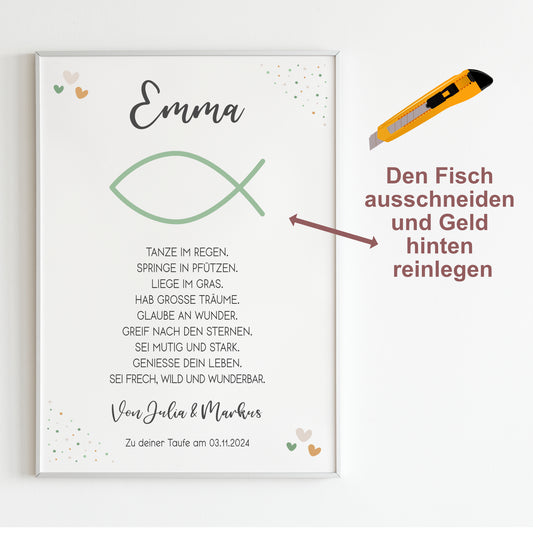 Geldgeschenk Patenkind Taufe Poster personalisiert Taufgeschenk Fisch Junge Mädchen Patenbrief