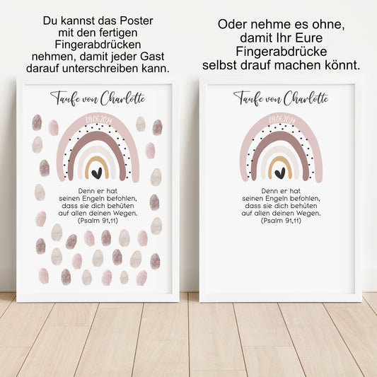 Taufe Gästeposter Fingerabdrücke Patenkind Regenbogen Gästebuch personalisiert Taufgeschenk Taufgästebuch Fingerprint Gästebild rosa