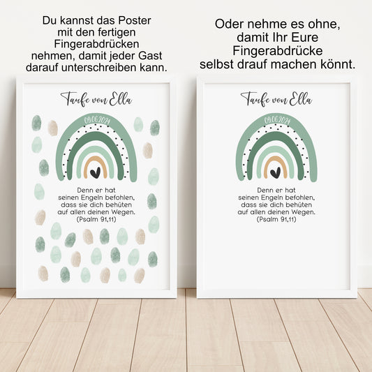 Taufe Gästeposter Fingerabdrücke Patenkind Regenbogen Gästebuch personalisiert Taufgeschenk Taufgästebuch Fingerprint Gästebild grün