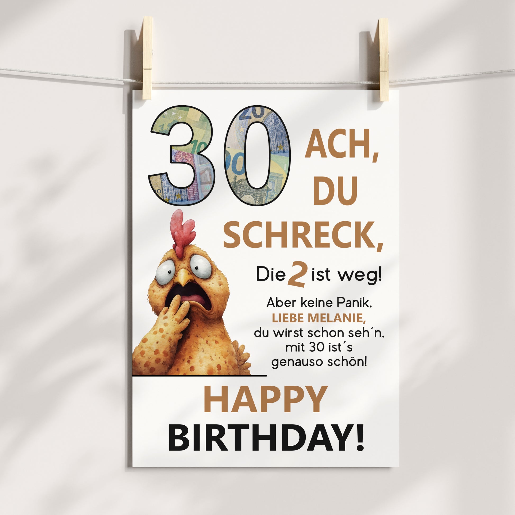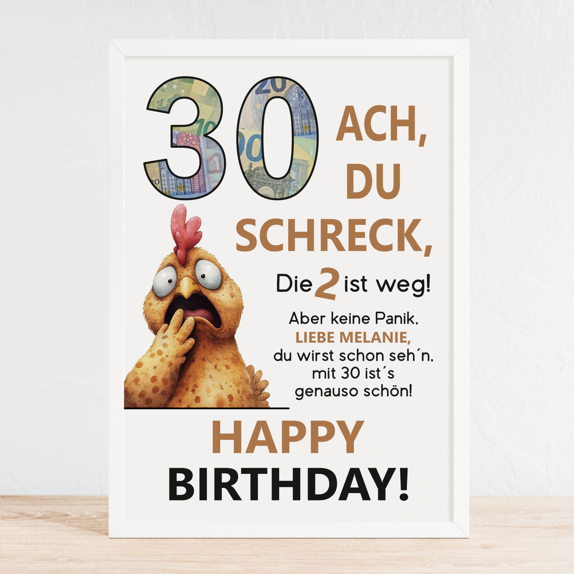 Geldgeschenk 30. Geburtstag Jubiläum runder Geburtstag Personalisiert Huhn Ach du Schreck