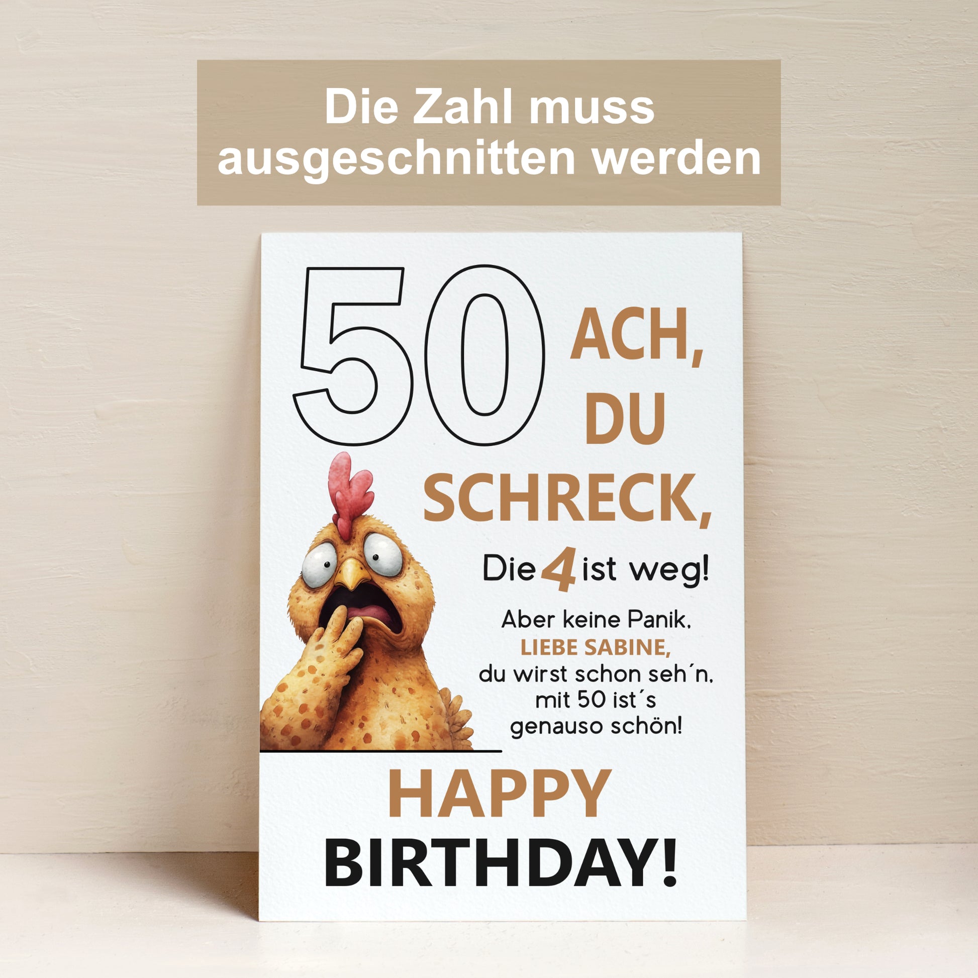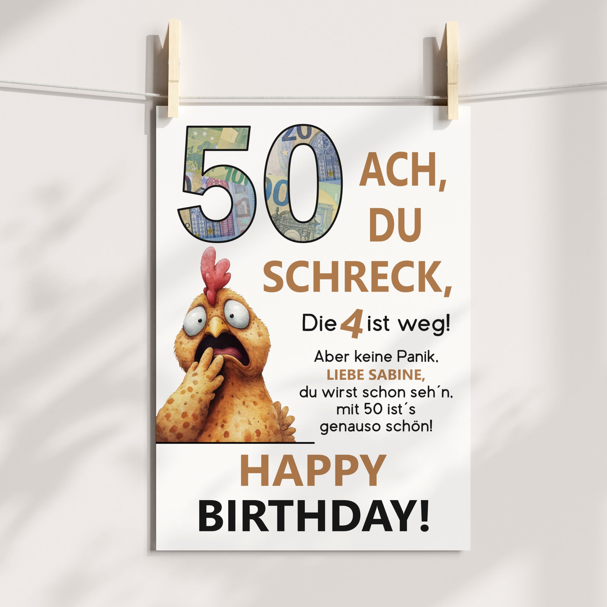 Geldgeschenk 50. Geburtstag Jubiläum runder Geburtstag Personalisiert Huhn Ach du Schreck