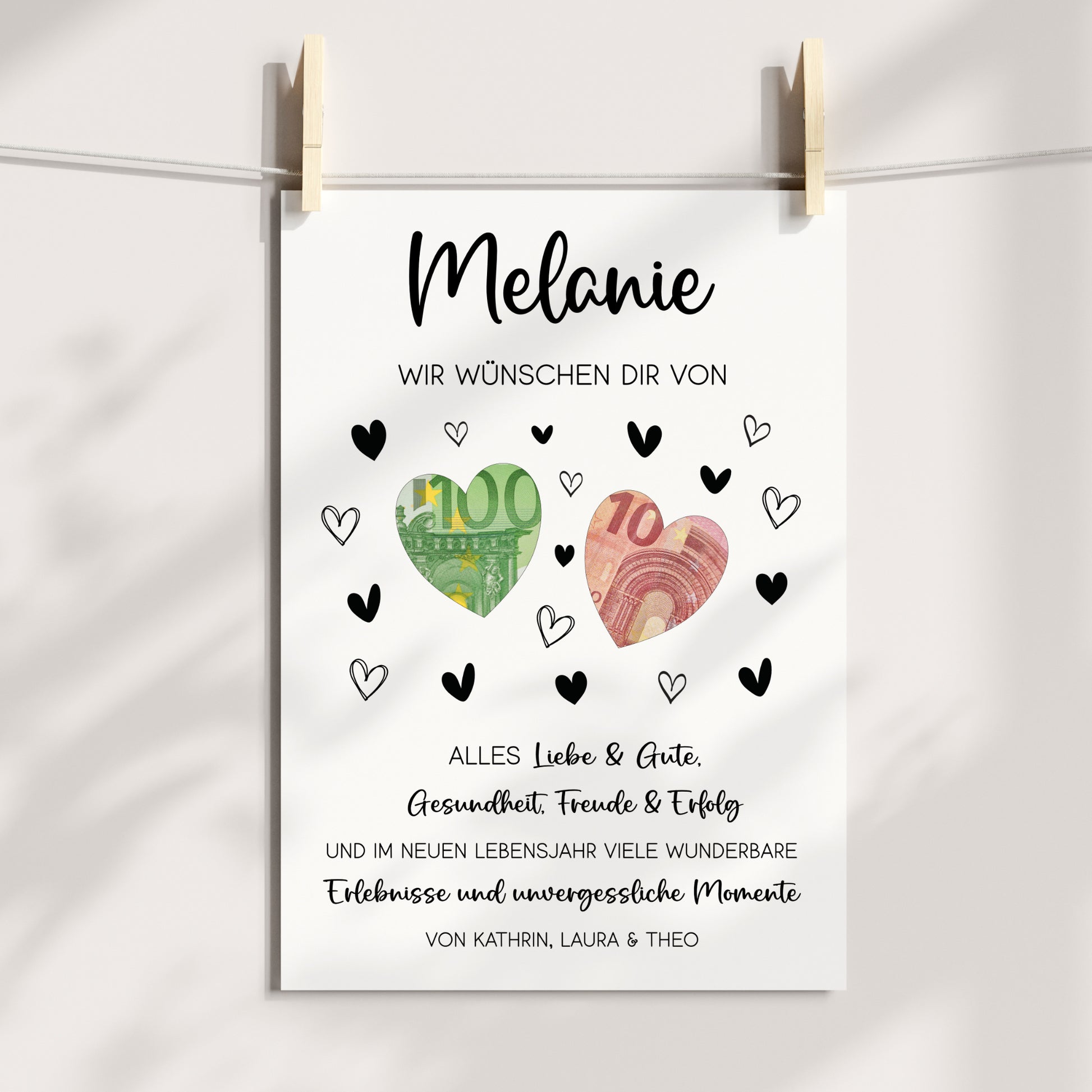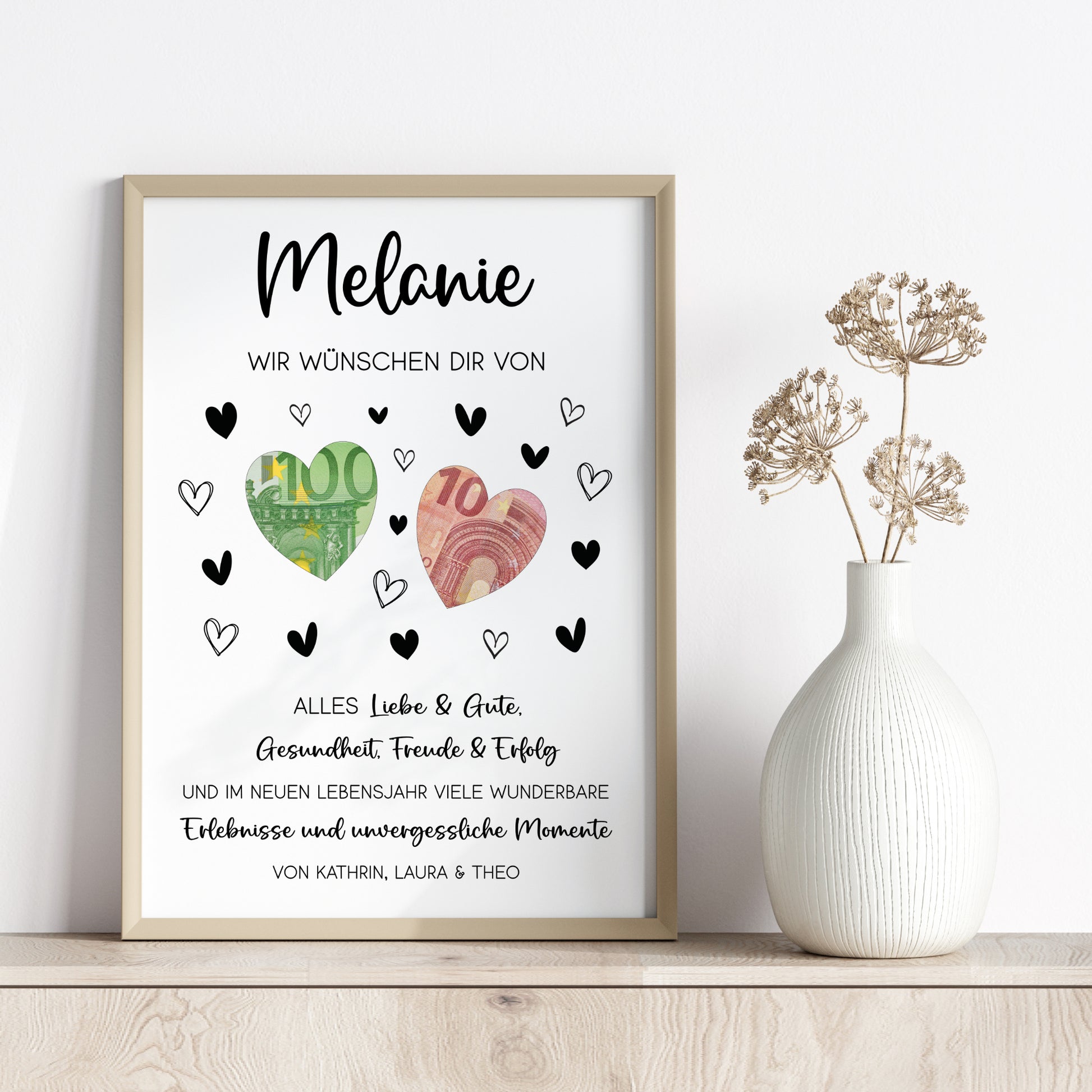Geldgeschenk Geburtstagsgeschenk von Herzen Personalisiert Poster Last Minute Geschenk für Erwachsene