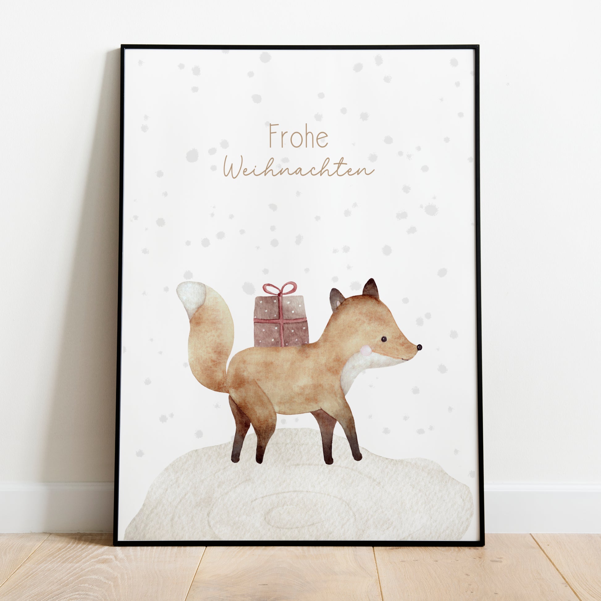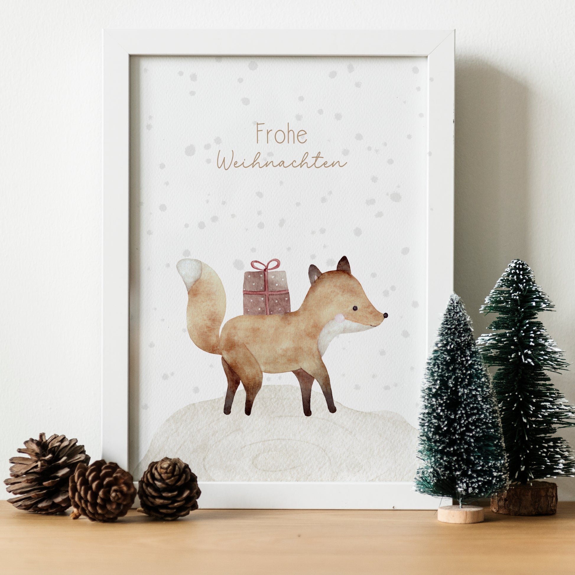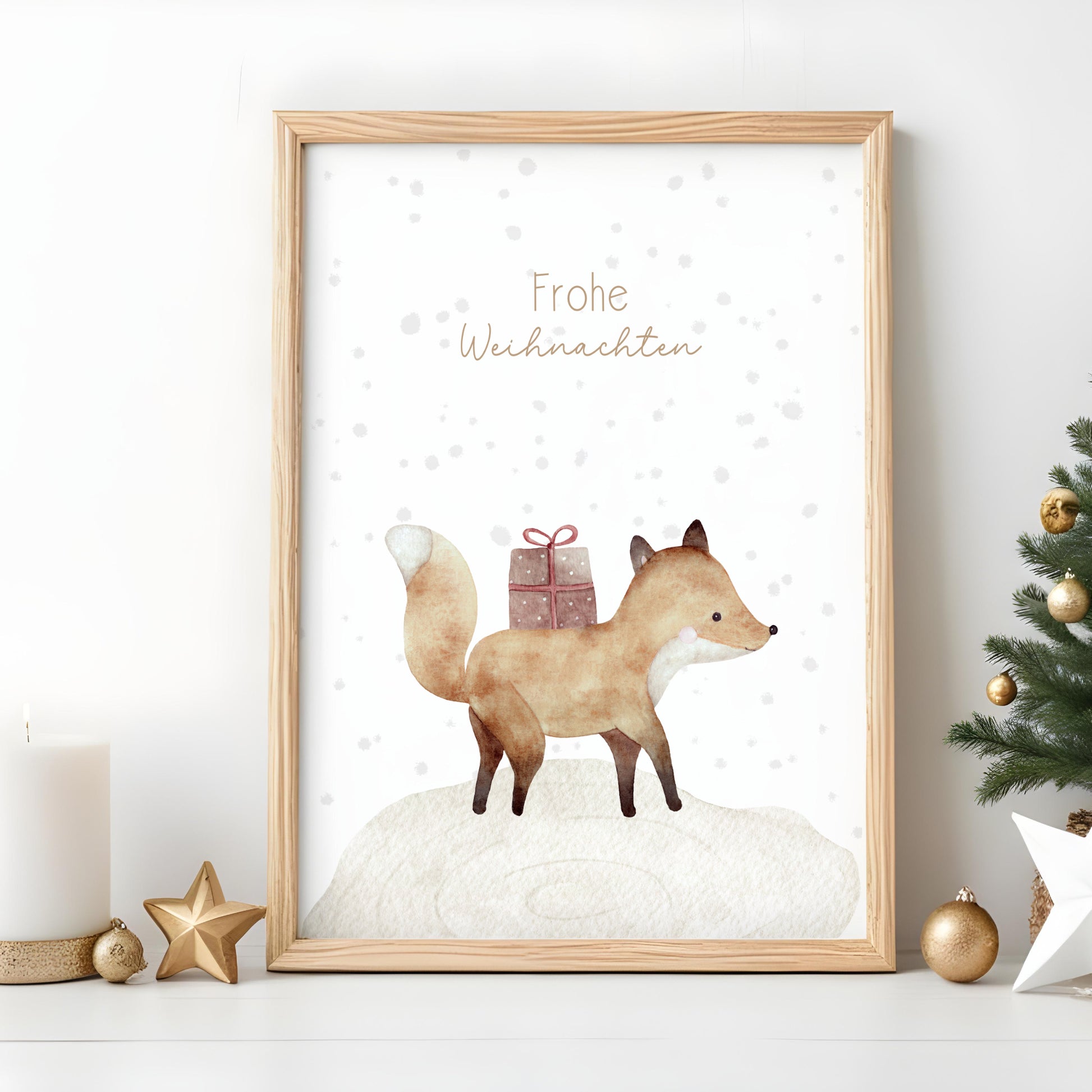 Weihnachten Poster Fuchs Weihnachtsdeko Schnee Winterdeko Aquarell